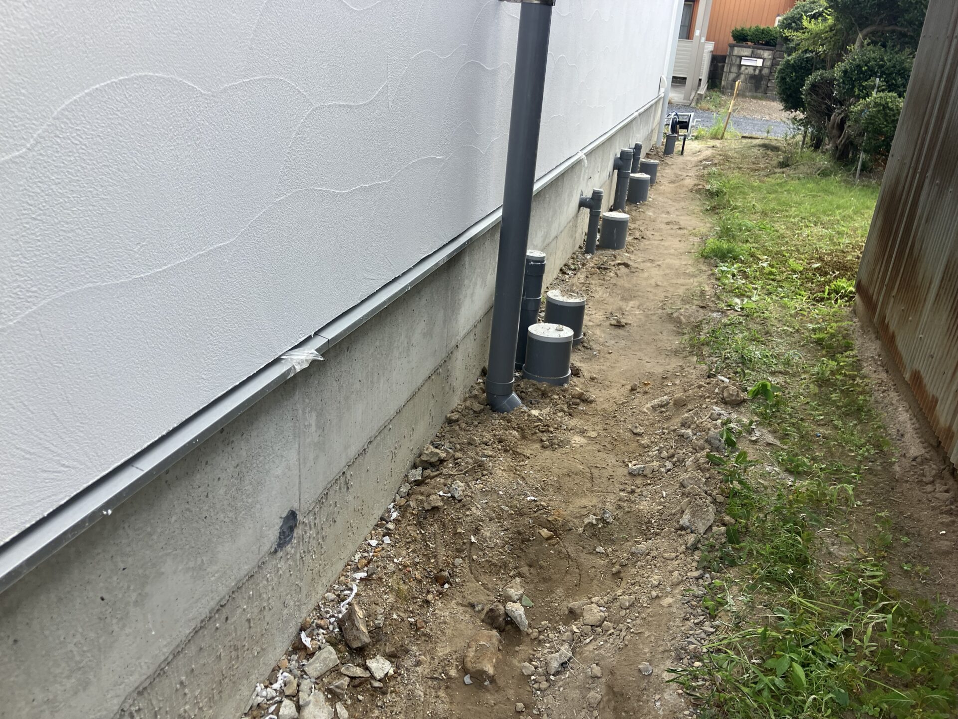 お家の工事が一通り進んで来ますと床下に水が溜まる要素が無くなりますので、水抜き穴の仕事はひとまず終わります。