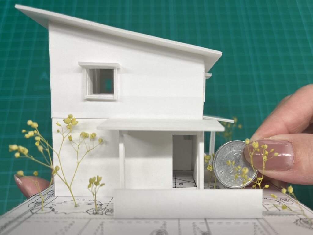 実際は高さ2,000mm以上ある玄関ドアも模型と一円玉で比較するとこのサイズ感になります…!!