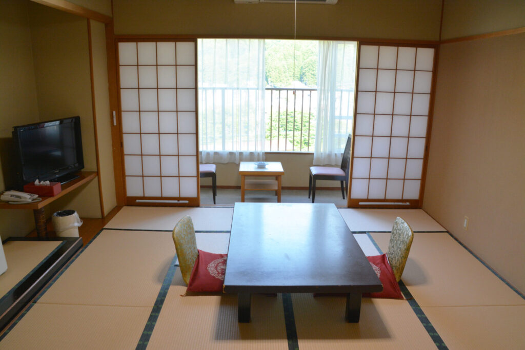 宴会のときにはふすまを開けて大広間に、夜には男女別の小部屋に仕切ることもできる——