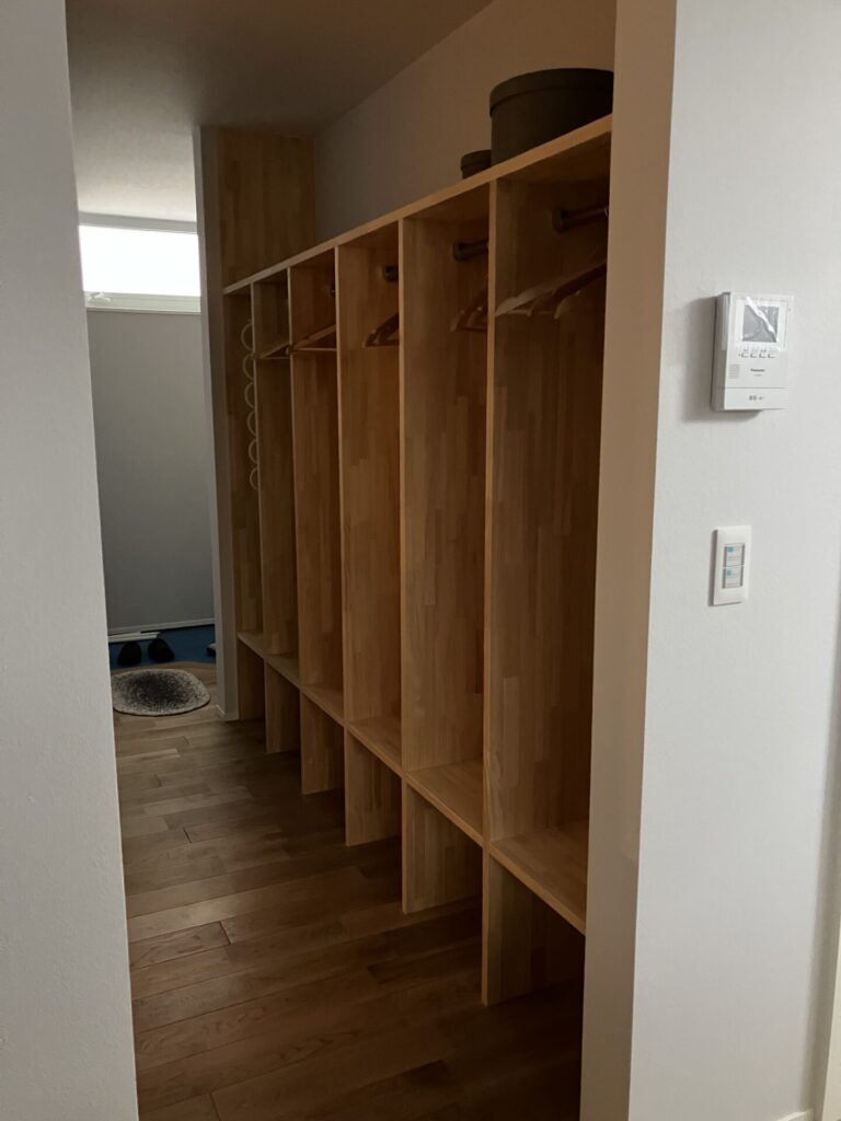 また、これから寒くなり、コートやブルゾンを愛用する季節がきますので、そんな場面にピッタリな造作を、打合せ時に御検討されてみては如何でしょうか。
