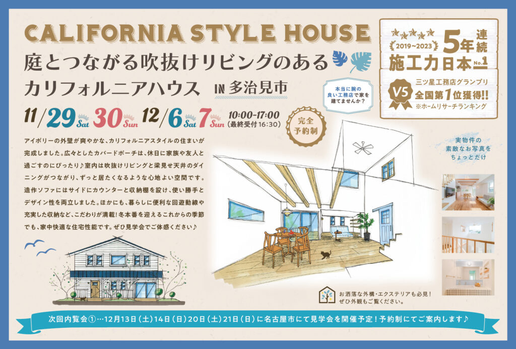 11/29(土)30(日)12/6(土)7(日)は、人気のカリフォルニアハウスです。