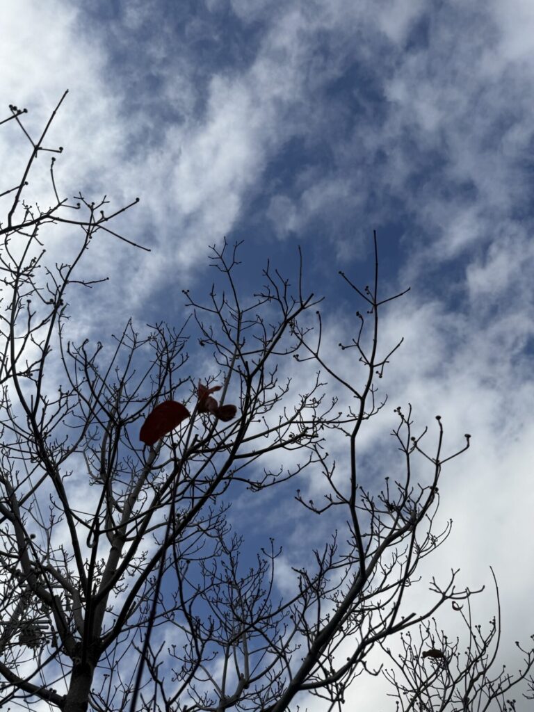 毎日かき集めていた落ち葉もほとんど無くなり、葉のない枝が寒々しく感じるようになってきました🍂