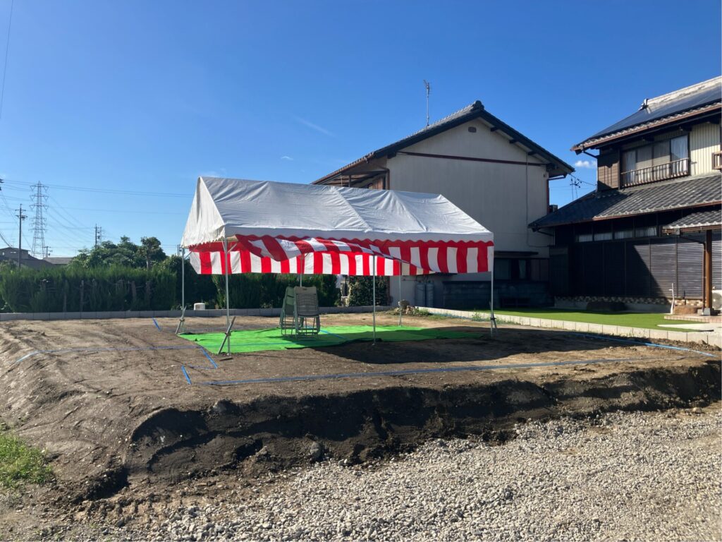 地縄張りは実際に建築させていただく現場に建物の位置や外形を地面に示すことでお客様がイメージしやすくなります。
