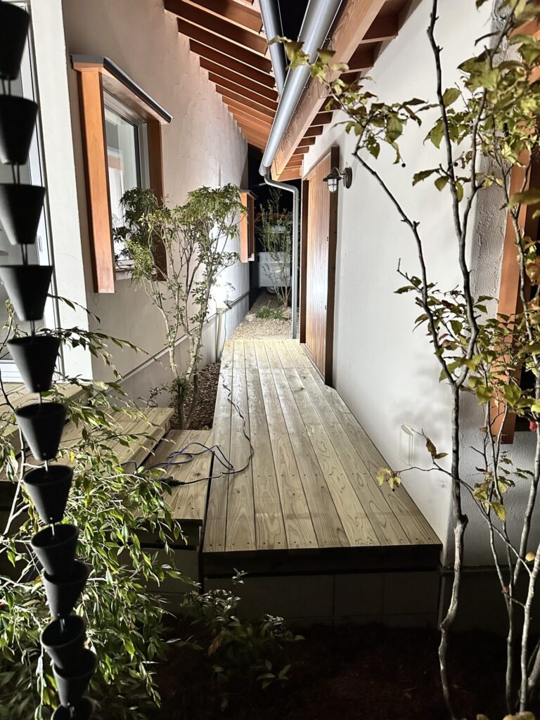 植栽もしっかりと植えられ小路な感じで心地よいデッキとなっているかと思います。