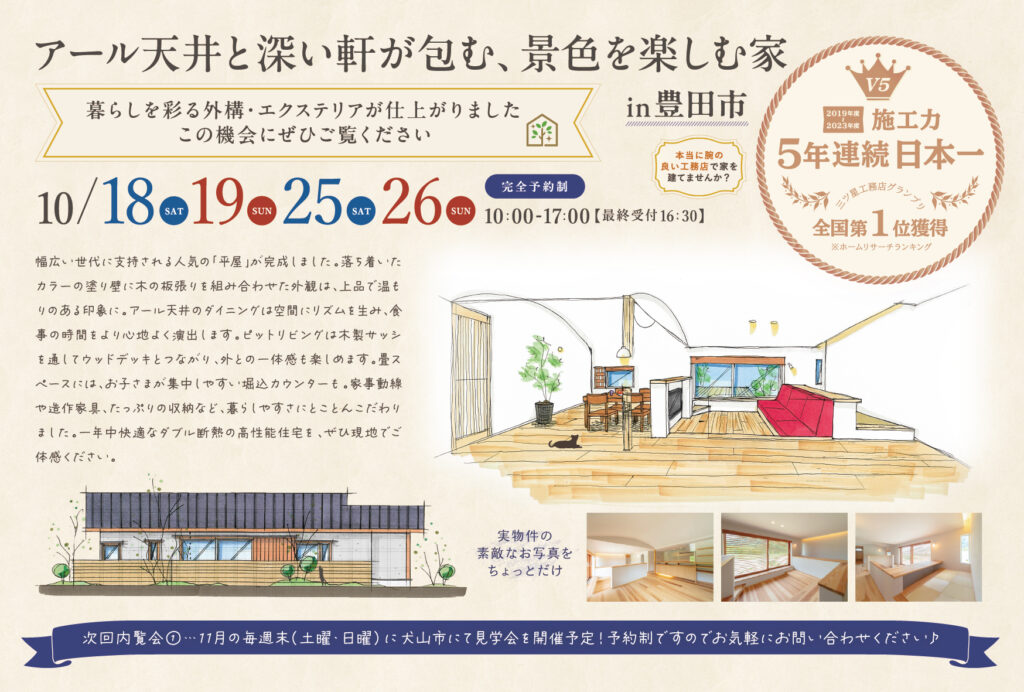 【完全予約制】アール天井と深い軒が包む、景色を楽しむ家 in 豊田市
