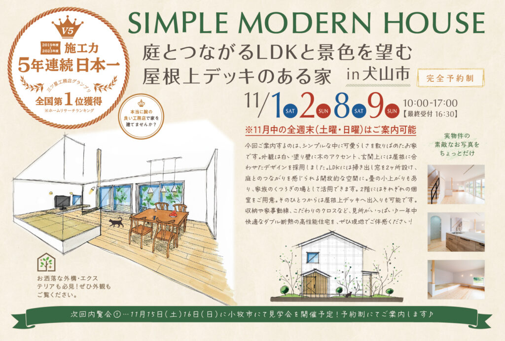 開催日:11月1日(土)2日(日)・8日(土)9日(日) ※11月中の全週末(土曜・日曜)はご案内可能