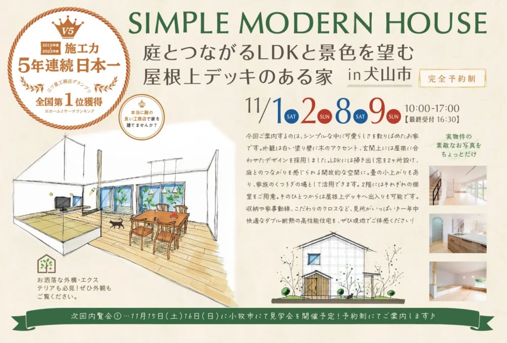 【完全予約制】庭とつながるLDKと景色を望む屋根上デッキのある家 in 犬山市