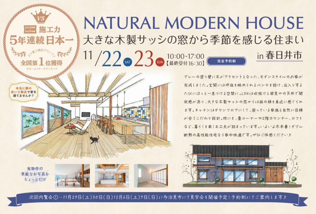 【完全予約制】大きな木製サッシの窓から季節を感じる住まい in 春日井市