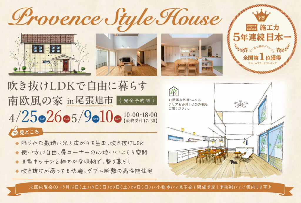 【完全予約制】吹き抜けLDKで自由に暮らす南欧風の家 in 尾張旭市
