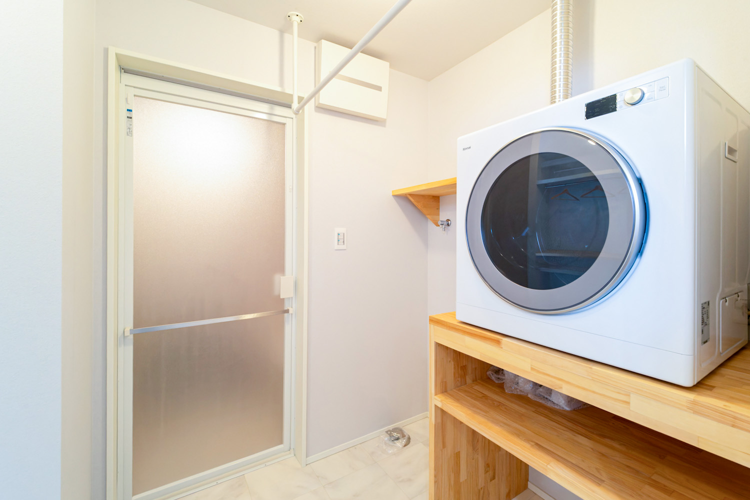 脱衣室にはガス乾燥機「乾太くん」やハンガーパイプがあり、ランドリールームとしてもお使いいただけます。