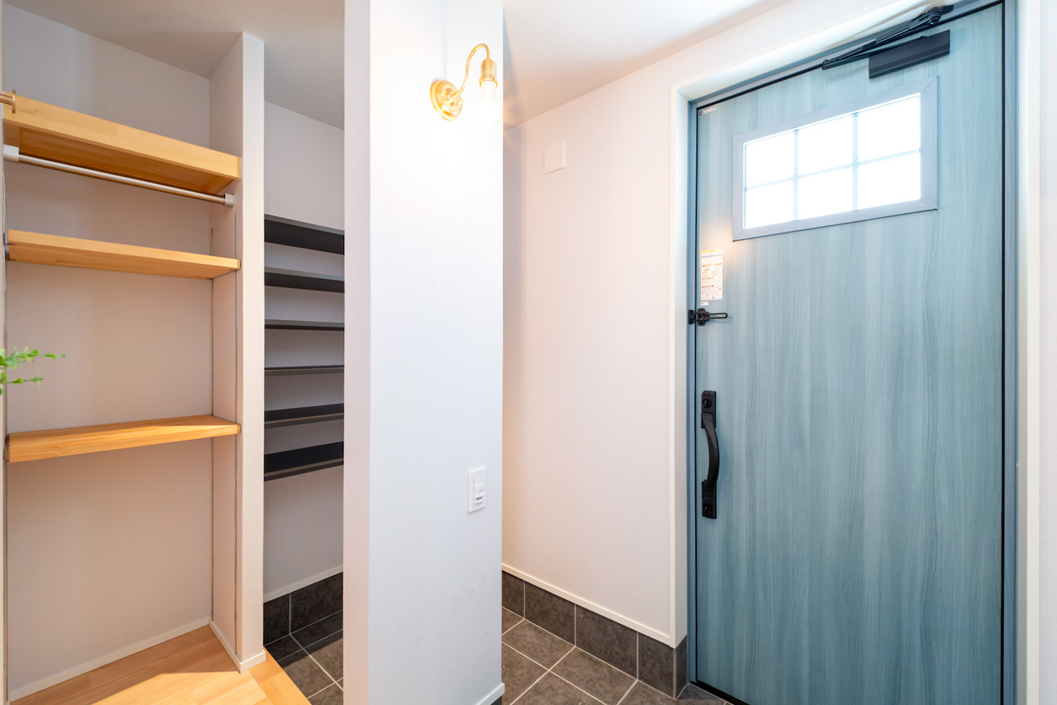 玄関は2way動線となっており、シューズクロークからも出入りが可能。来客用と家族用で動線を分けることができます。